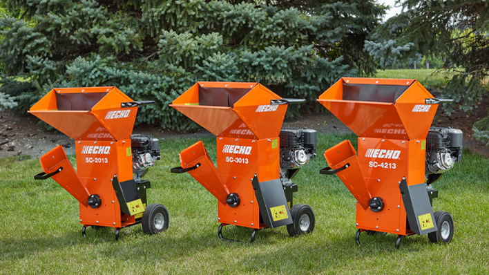 Chew ‘em up and spit ‘em out. ECHO chipper/shredders pulverize unsightly downed branches and debris, recycling it into landscaping-friendly mulch and ¾”-thick wood chips in seconds.